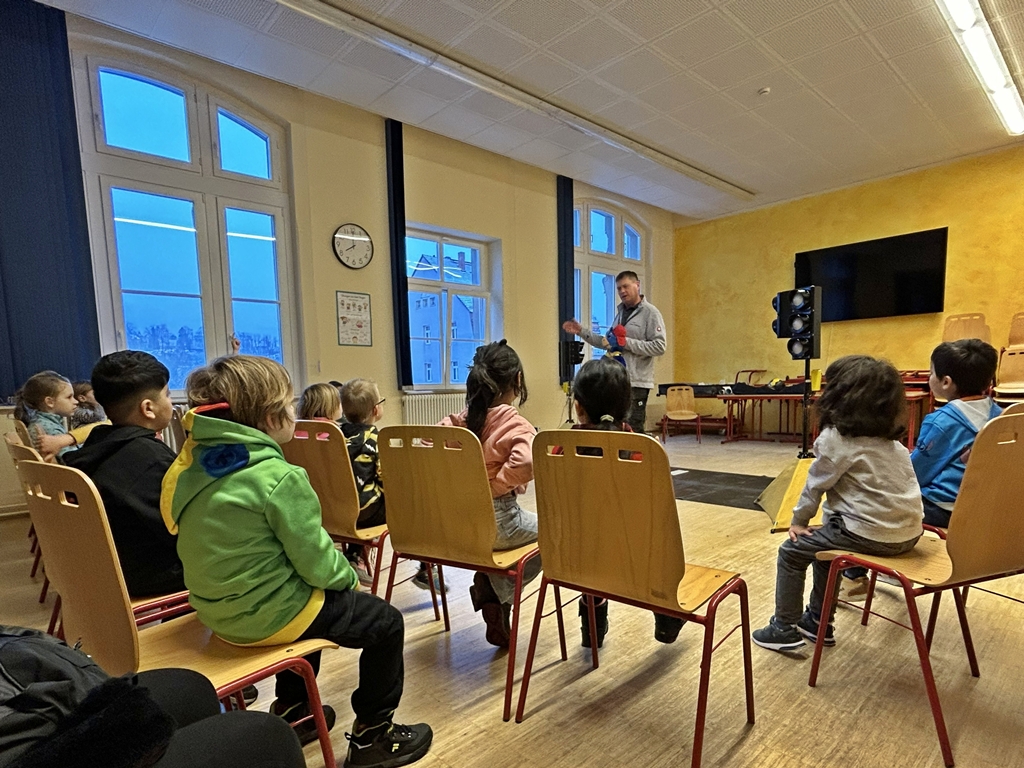Im Rahmen des ADAC-Verkehrstrainings bekamen die ersten Klassen Besuch von ADAC und dem Raben ADACUS. Dieser erklärte uns, wie man richtig über die Ampel geht und worauf man beim Überqueren der Straße besonders achten muss. Nach einer kurzen Theorieeinheit durften wir selbst loslegen, in verschiedene Rollen schlüpfen und unser Wissen zeigen. So wurden manche zu Autofahrern, Fußgängern oder Rollerfahrern. Nun hieß es: Aufpassen!