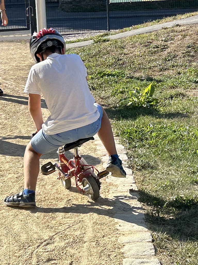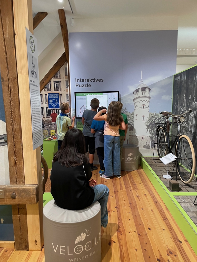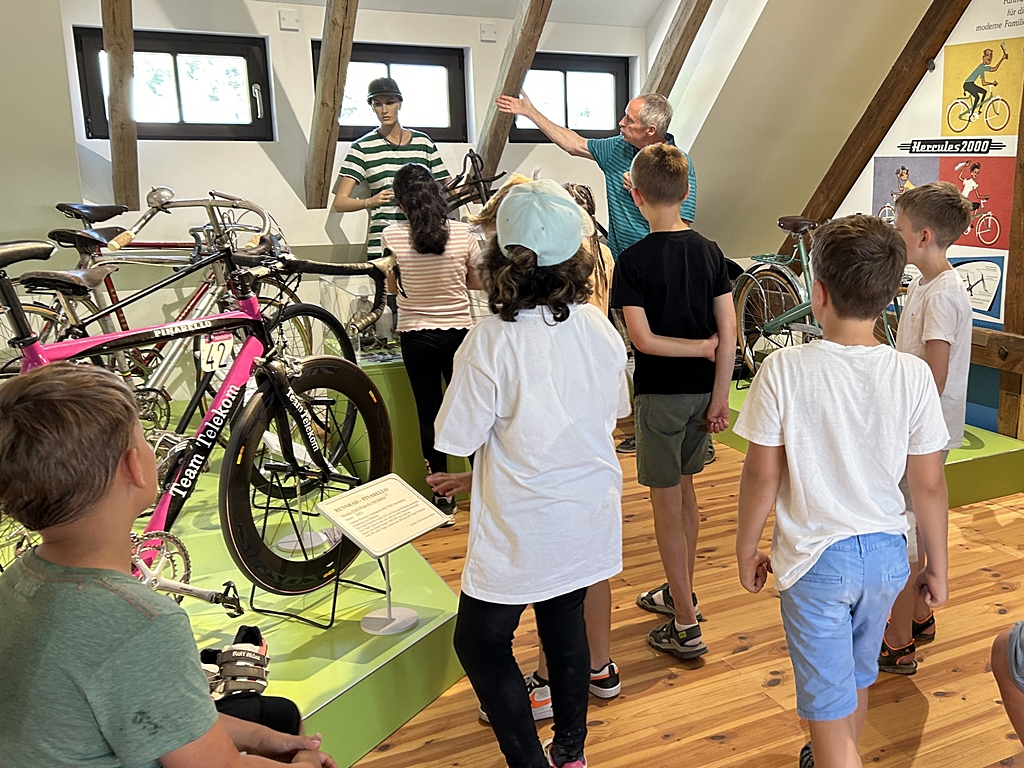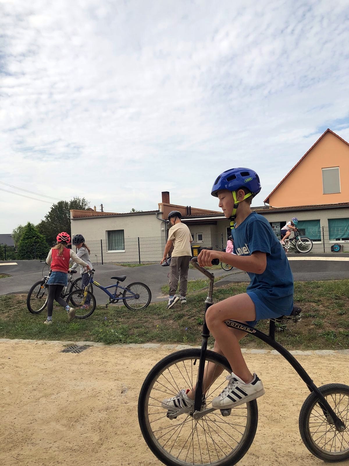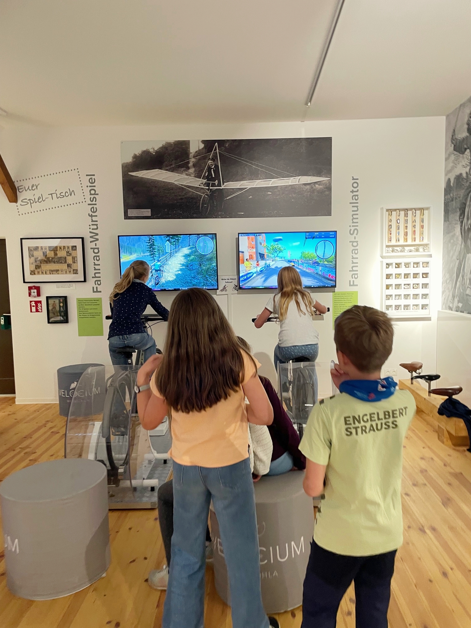 Im Rahmen des Projektes "Fahr Rad- aber sicher" machten sich die 4. Klassen auf den Weg nach Weinböhla, um das Fahrradmuseum "Velocium" zu besuchen. Dort gab es jede Menge Räder aus der Vergangenheit zu bestaunen. Wer sich traute, konnte sogar auf ein Hochrad hinaufklettern. Der Museumsleiter erzählte während der Führung interessante Details über Lebensweise und Technik in früheren Jahren. Außerdem konnten alle verschiedene Fahrräder auf der extra angelegten Abenteuerstrecke im Außenbereich ausprobieren. Einige Kinder machten einen kleinen Wettbewerb an den Fahrradsimulatoren.