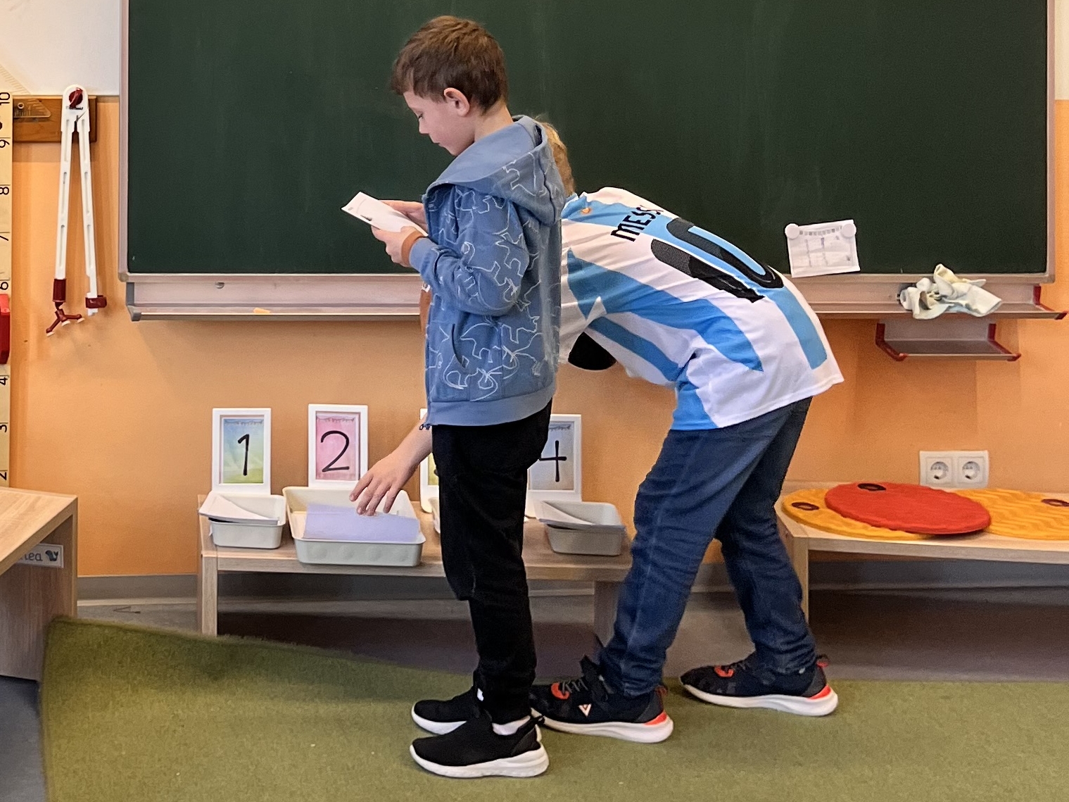 Beim Vorlesen des Buches wurde die Geschichte immer wieder durch kurze kreative Arbeitsphasen unterbrochen. So entstanden viele freie Schreibanlässe, bei denen die Kinder ihre eigenen Lieblingswörter entdeckten, erfanden und aufschrieben. Ein besonderes Highlight war das Basteln der persönlichen Wort-Schatztruhe: Jede Schülerin und jeder Schüler gestaltete eine eigene kleine Truhe und füllte sie mit ganz individuellen „Wortschätzen“. Neben Lieblingswörtern fanden darin auch Wörter Platz, die die Kinder von ihren Mitschülern geschenkt bekamen – eine liebevolle Geste, die für viel Freude und Staunen sorgte. Der Thementag war für alle ein rundum gelungenes Erlebnis. Er bot nicht nur viele kreative Schreibmomente, sondern stärkte auch die Klassengemeinschaft nachhaltig. So wurde Sprache auf spielerische Weise zu einem echten Schatz, den die Kinder mit nach Hause nehmen konnten.
